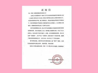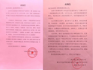 112022.02新乡建工建设有限公司和河南新飞智家科技有限公司向开云网页版-kaiyun开云(中国) 发来表扬信 -