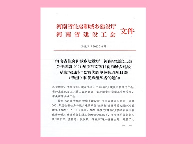272022.01开云网页版-kaiyun开云(中国) 焊工班组荣获“2021年度河南省住房和城乡建设系统‘安康杯’竞赛优胜班组”称号 -