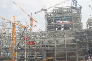 濮阳龙丰“上大压小”新建项目钢结构工程主厂房本体为钢框一排架结构承重体系,钢结构安装总量12000吨。 所获荣誉:中国钢结构金奖、河南省建筑业新技术应用示范工程、中国建筑工程“鲁班奖”。 -