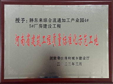 012023.06许昌胖东来综合流通加工产业园4#5#厂房建设工程荣获“河南省建筑工程质量标准化示范工地”