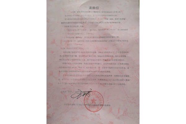 102019.01北京国电德胜工程项目管理有限公司锡林热 电项目监理部给钢构公司发来表扬信 -
